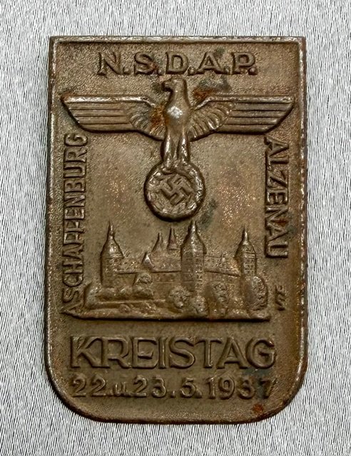 N.S.D.A.P. Aschaffenburg Alzenau Kreistag 22.u.23. 5. 1937 Tinnie, metal pinback, 30mm X 45mm