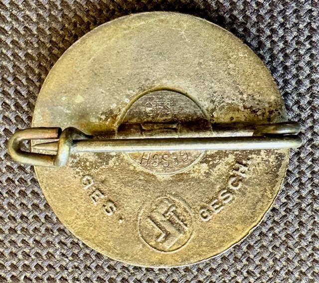 NSDAP Membership Badge, rare early example with maker mark for Steinhauer & Lück, Lüdenscheid, both badge and pin clasp marked "ges. gesch." 23mm