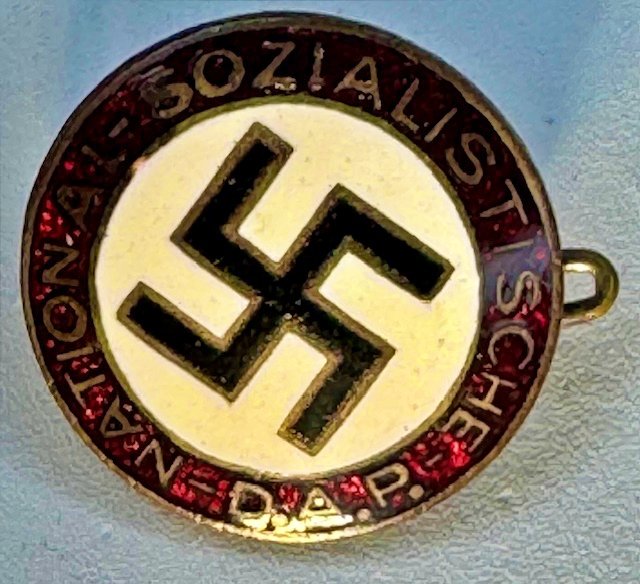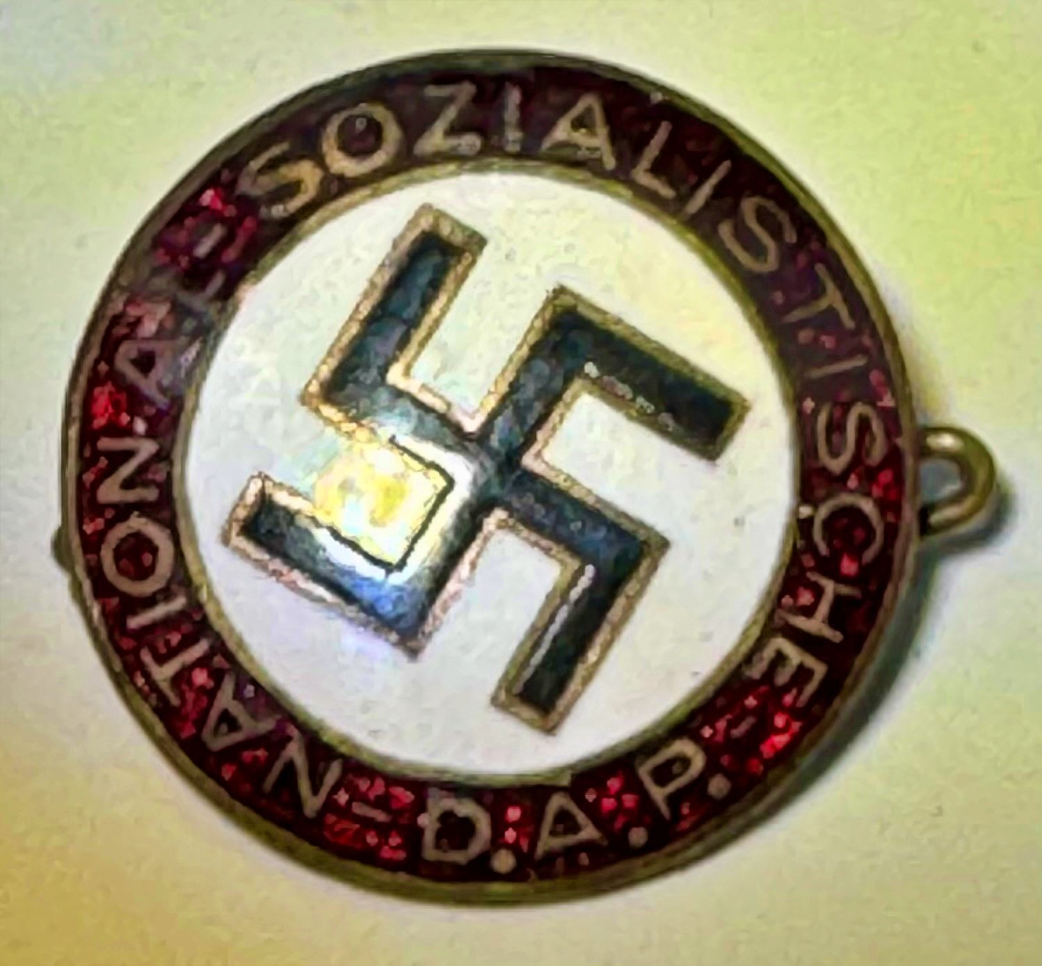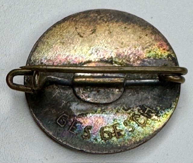 NSDAP Membership Badge, early Ges. Gesch. marked, 18mm, has very dark enamel so it's hard to photograph