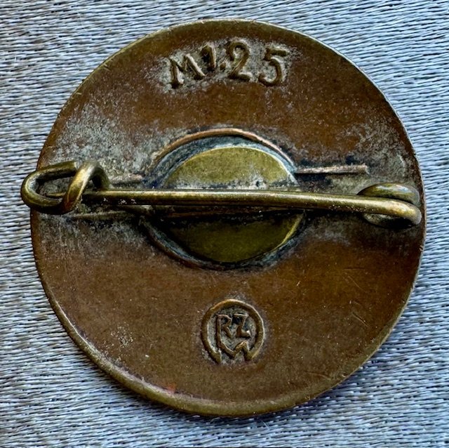 NSDAP Membership Badge, mid 30's maker marked "RZM M1.25" for Rudolf Reiling, pinback, 23mm
