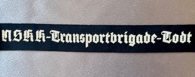 NSKK Transportbrigade Todt Cuff Title, approx. 16" in Length