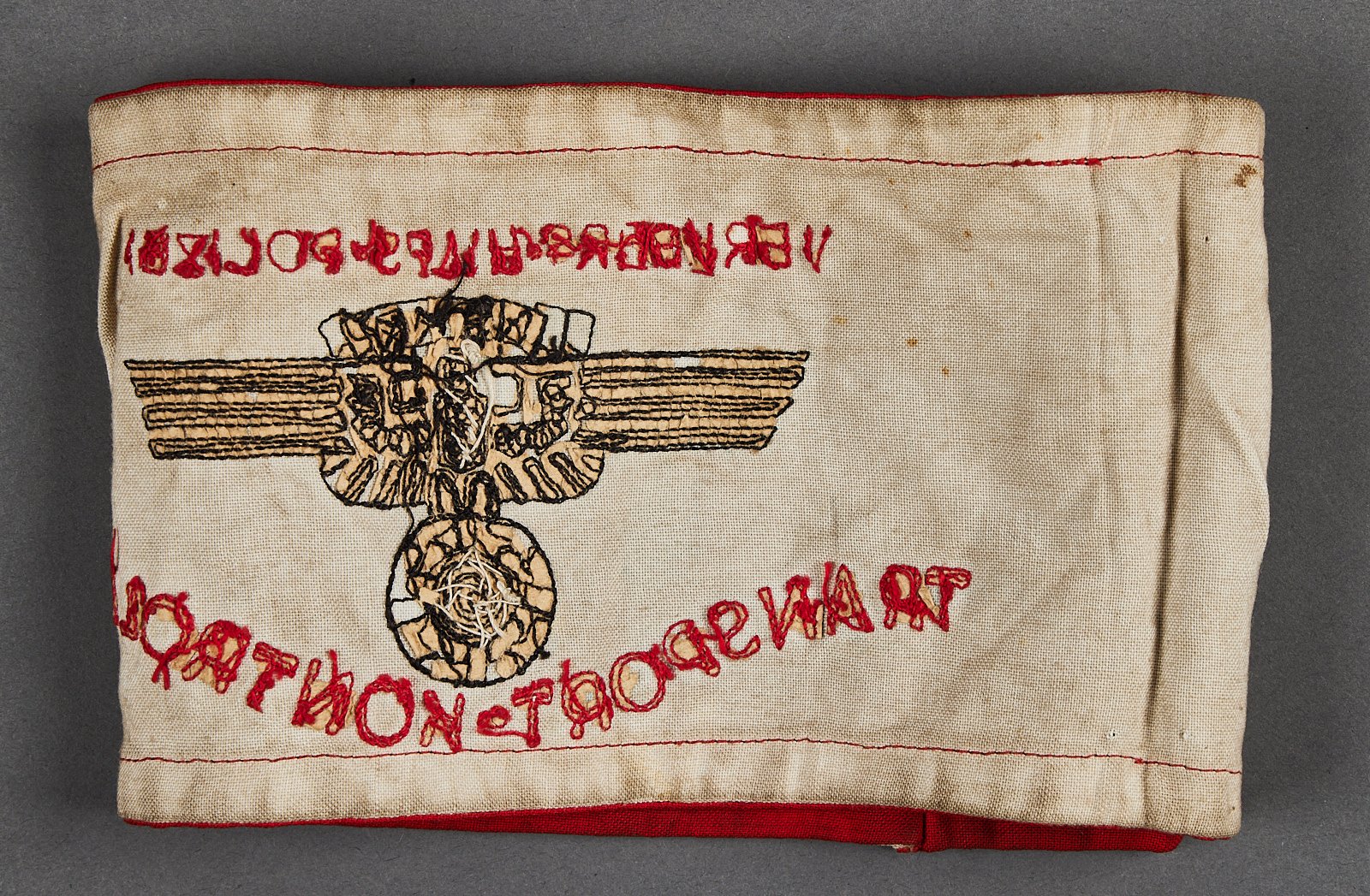 NSKK Verkehrs Hilf Polizei Transport Kontrolle Armband, chain stitch on cloth, sewn, approx. 14" in length
