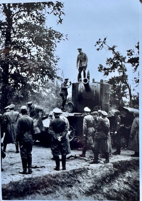 Officers Inspecting French Tank Photo, archive print, 5" X 7"