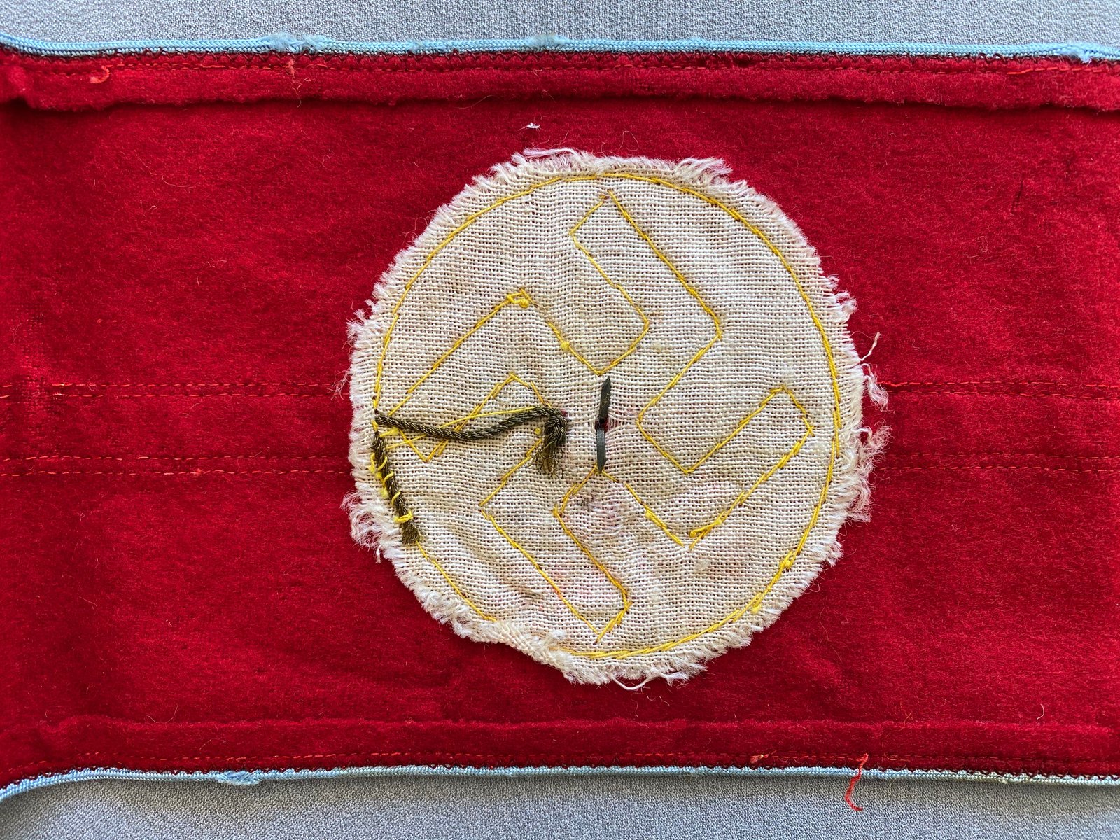 Armband for Ortsgruppe Blockleiter and Betriebsobmann (B). Bullion oakleafs (10mm) with black ribbon swastika and pip at center. Highest quality construction and bullion work. Approx. 20" in length.