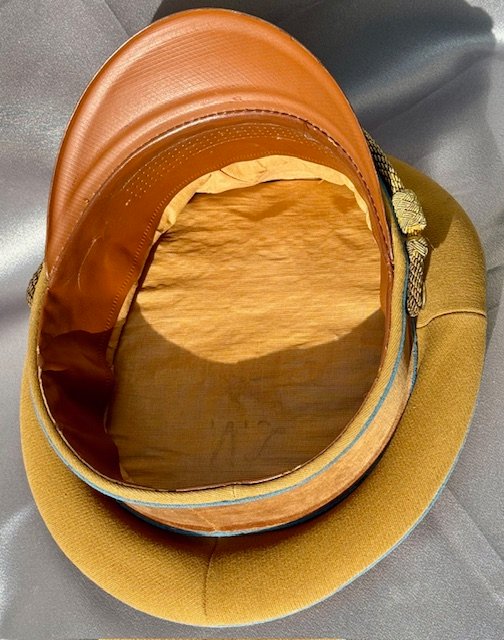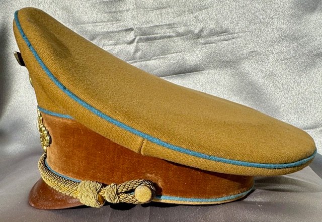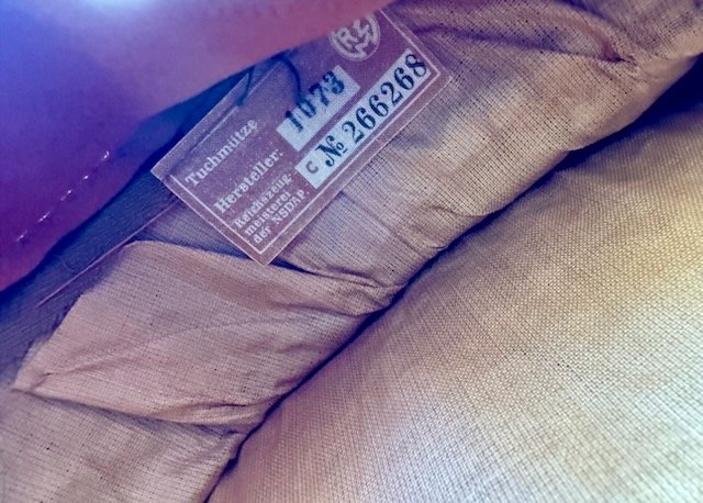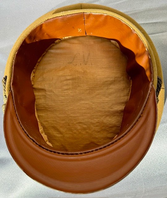 Ortsgruppe Visor. Excellent condition to this visor! No mothing or sweat shield, faint owner initials as shown. The RZM tag present under the pliable sweatband. Nice tight insignia, beautiful saddle shape, about a size 56