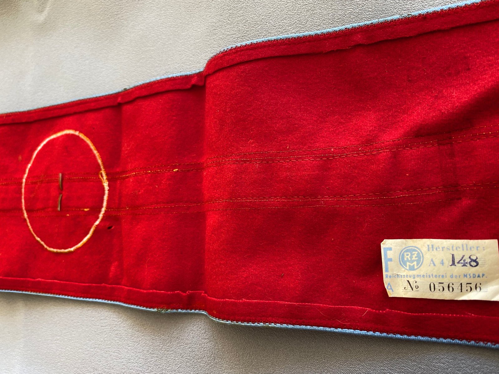 Armband for NSDAP Ortsgruppenleiter. Bullion oakleafs with black ribbon swastika and pip to center. Nice example of highest leader at the Orts level. Unsewn, approx. 20" in length