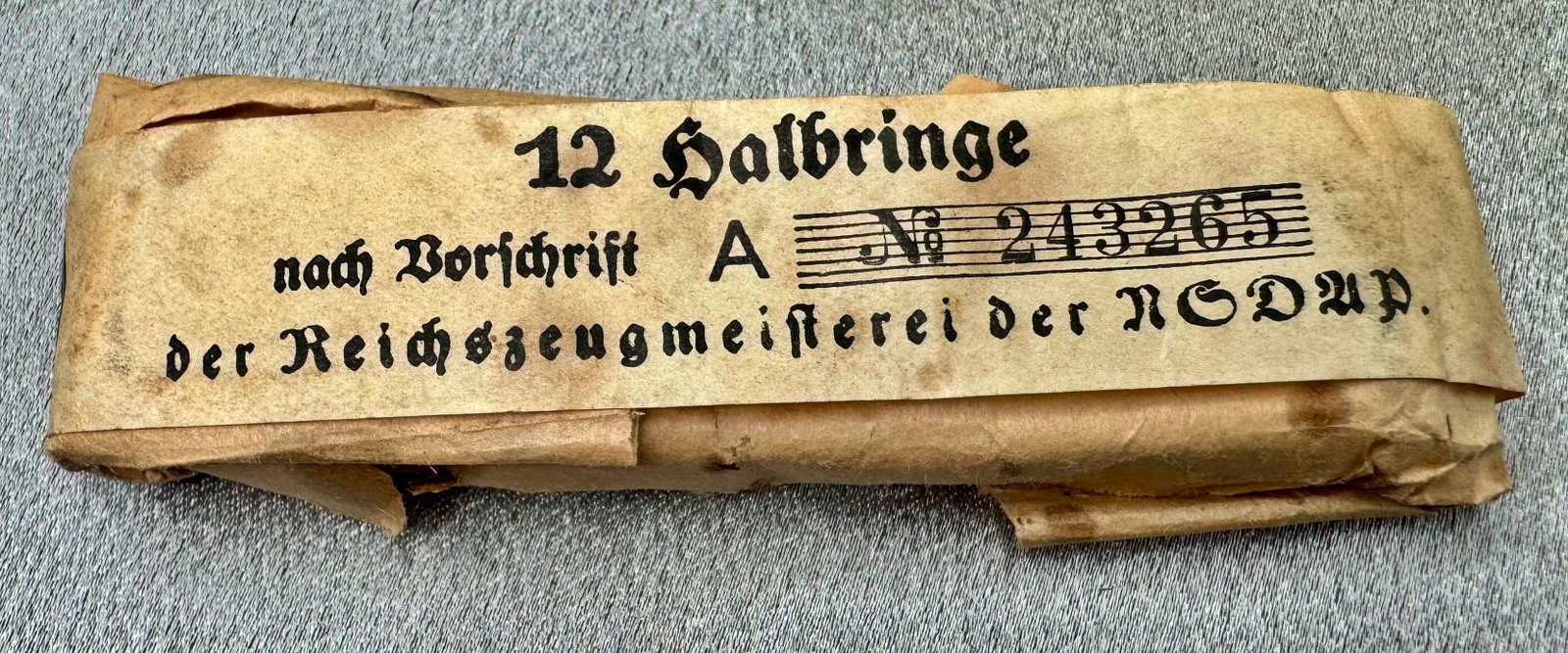 12 "Halbringe" still in the original RZM marked package. Excellent condition. These are gilted half D type rings as shown