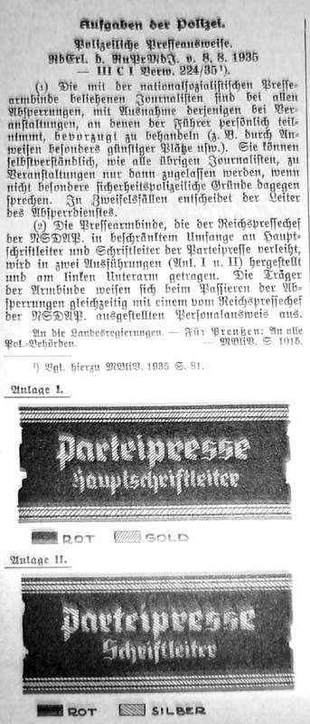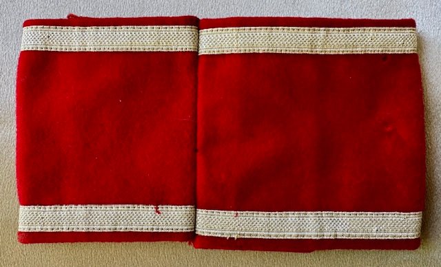 Parteipresse Schriftleiter or Party Press Editor. Silver braid and lettering, worn by the NSDAP Press Officials as shown on page 101 in Angolia's "Cloth Insignia of the NSDAP and SA". Very rare, the book only has a line drawing depiction on page 101. Sewn at the back, approx. 19" overall length. Rare, this is only the 2nd one I have seen. These were introduced and worn from 1935 on.