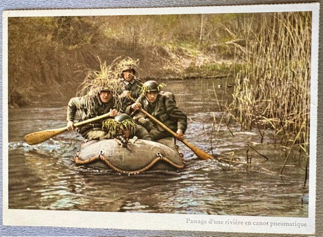 Passage d'une rivière en canot pneumatique Postcard, period French