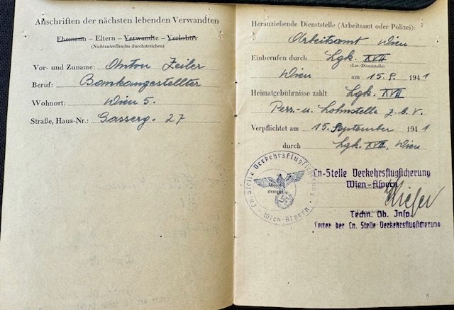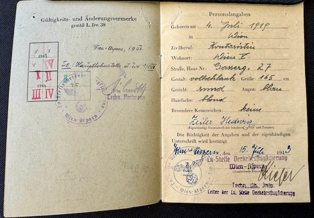 Personal ID for a woman issued by the Air Force command in Wien Aspern