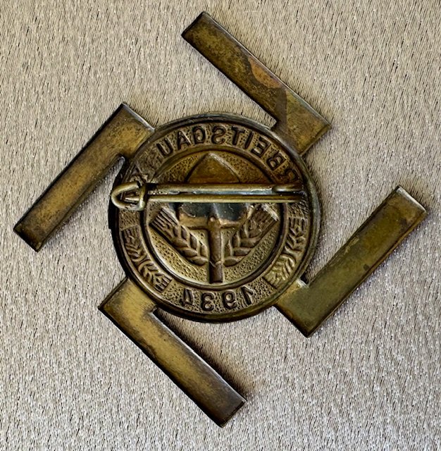 RAD Arbeitsgau XXI 1934 Tinnie, metal pinback, 37mm x 37mm