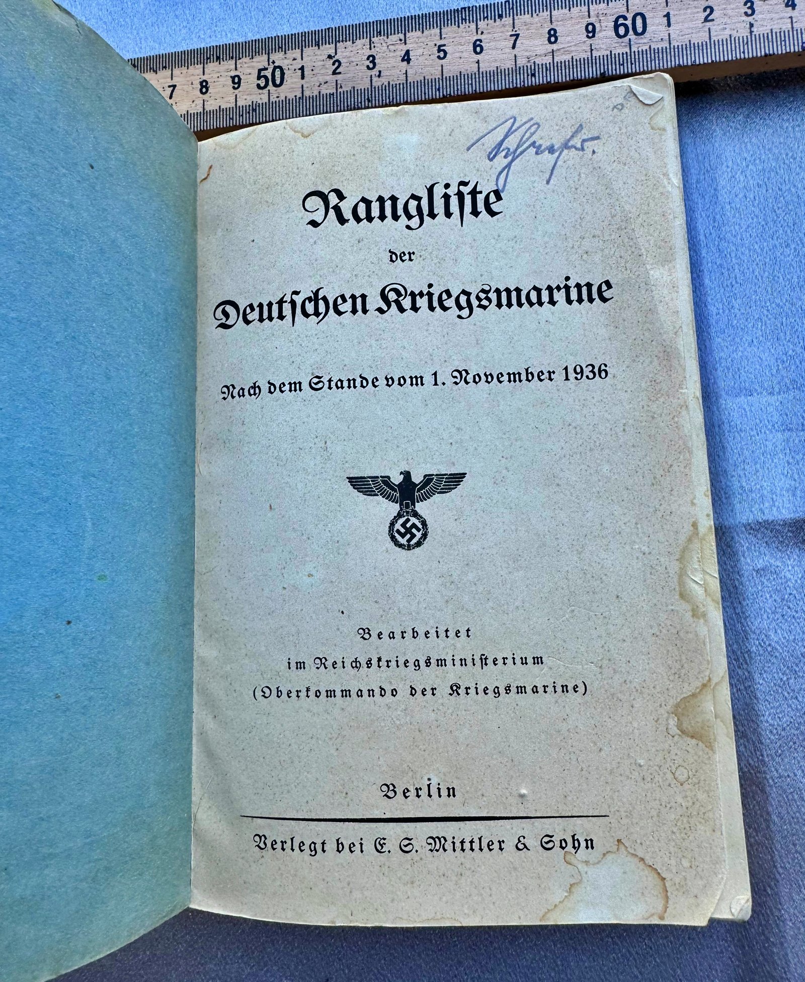 Rangliste der Deutschen Kriegsmarine 1936, intact, all pages present.