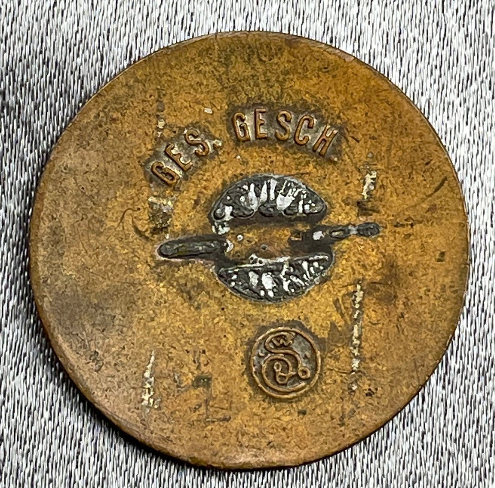 RDK Membership Badge, Reichsbund der Kinderreichen, maker marked, 25mm, no pin. You never see the blue ones for sale.