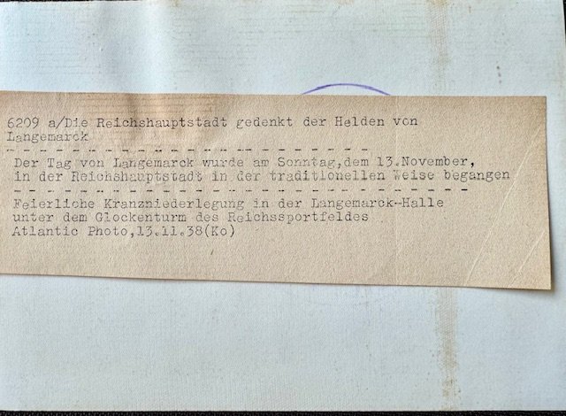The Reich capital commemorates the heroes of Langemarck commemorating the first battle of Ypres in WWI. Period press photo, approx. 7" X 5"