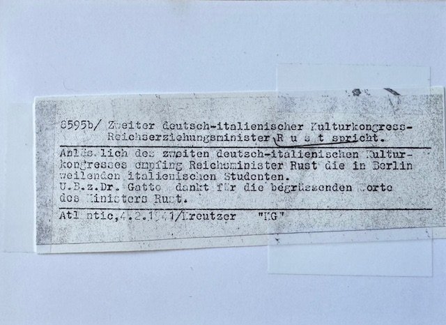 Reich Education Minister Rust on the occasion of the Second German-Italian Cultural Congress on Feb. 4, 1941. Copy of press photo, approx. 7" X 5"