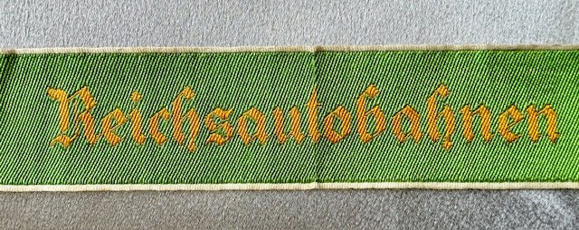 Reichsautobahnen Cuff Title, approx. 15" in length, very rare