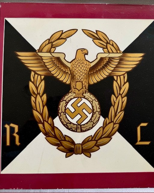 Extremely rare post 1939 Reichsleiter Vehicle Pennant with Gothic "RL" letters. All metal style with bracket RZM marked M3/61 (all metal pennants by this maker). Excellent condition, only one like this I have ever owned.