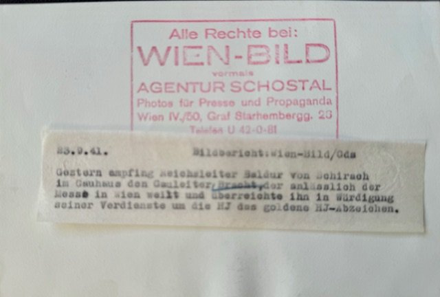 Reichsleiter von Schirach with Deputy Gauleiter Bracht Photo. Press photo, approx. 5" X 7" in size.