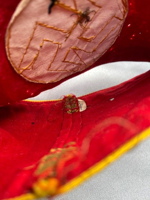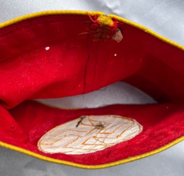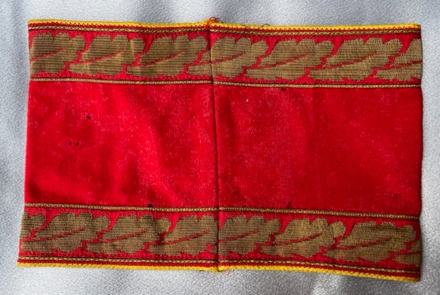 Armband for the Reich Leiter eines Oberen (Obersten-Amtes). Gorgeous bullion oak leaves and borders, black ribbon swastika. partial RZM tag. This one came off a tunic, still sewn together, approx. 17 inches in length, slight mothing as shown. This is one of the rarest armbands to find, only the 3rd one I have owned in 40+ years, 2nd highest rank at the Reich level.