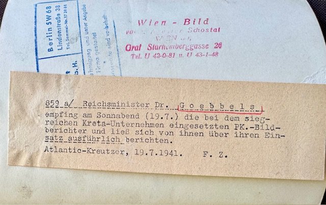 Reichsminister Dr. Josef Goebbels congratulating Crete soldiers , period press photo, 7" X 5"