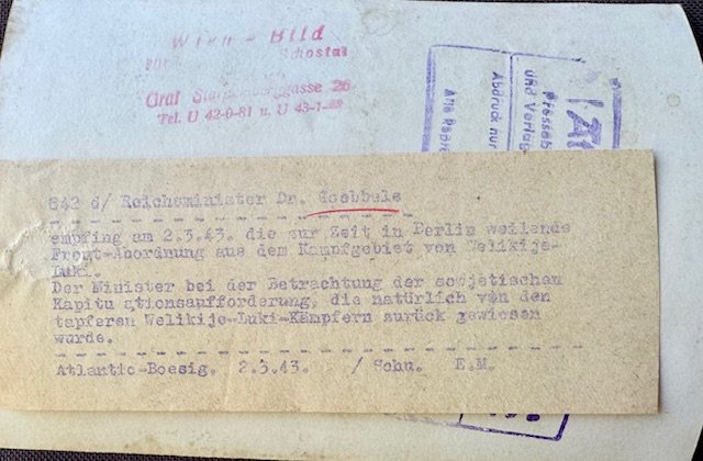 Reichsminister Dr. Josef Goebbels congratulating Crete soldiers, period press photo, 7" X 5"
