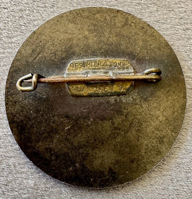 Reichsparteitag 1934 Tinnie, metal pinback, [in is maker marked "Deschler & Sohn München", 38mm
