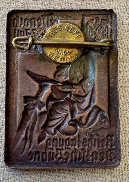 Reichstagung Eisenach Deutsche Bühne 4.-7. Juli 1934 Tinnie, metal pinback, pin marked "ROBB. NEFF W.57 BERLIN", 28mm x 40mm