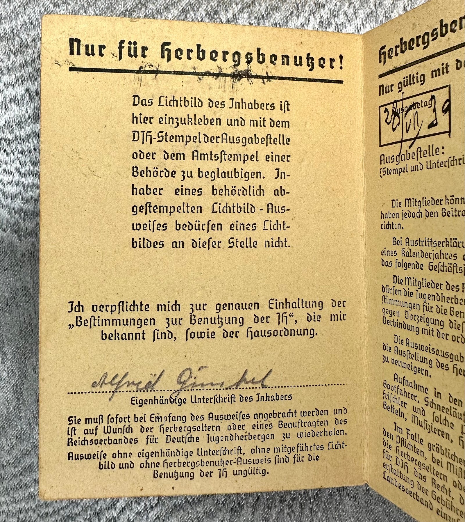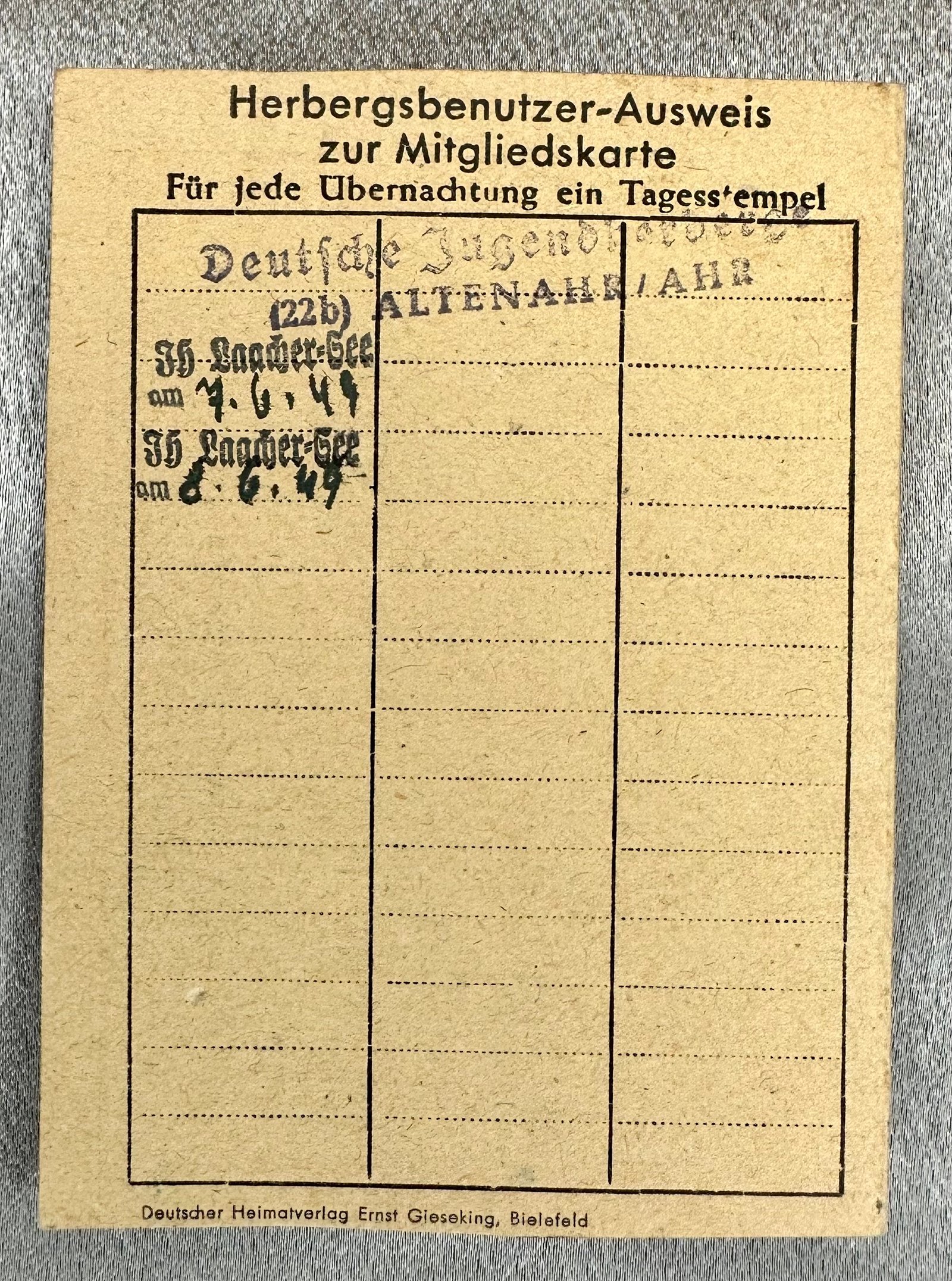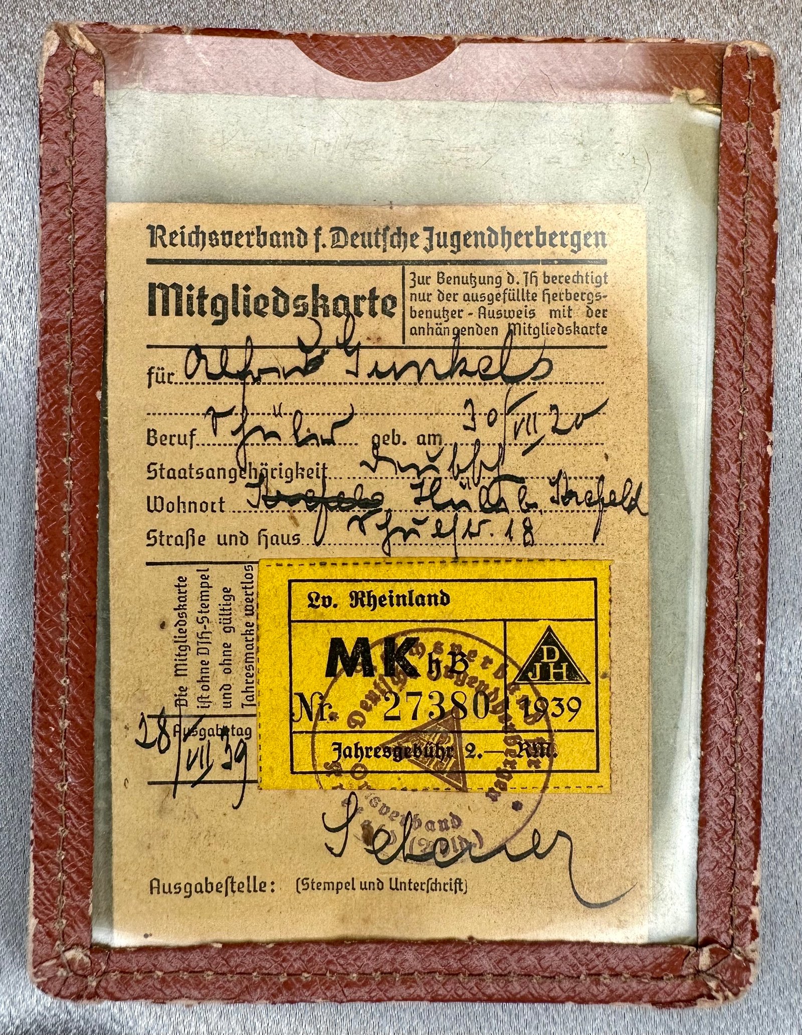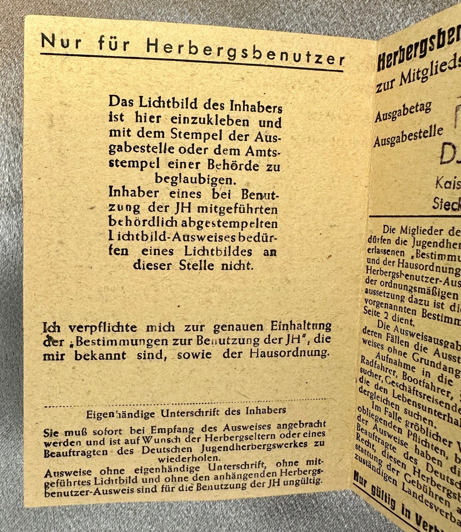 Reichsverband f. Deutsche Jugendhergergen Mitgliedskarte with Period H.J. Ausweis cover