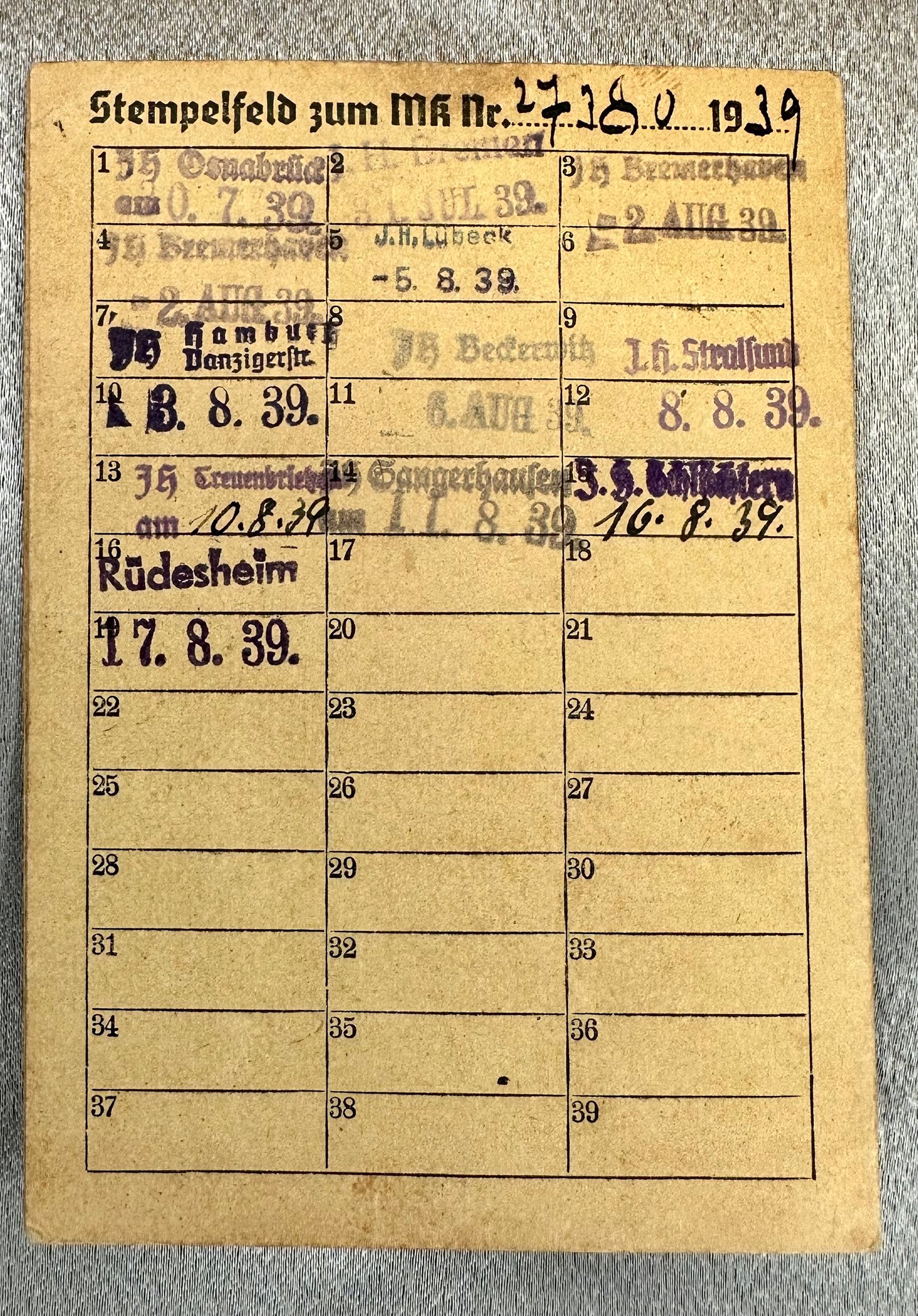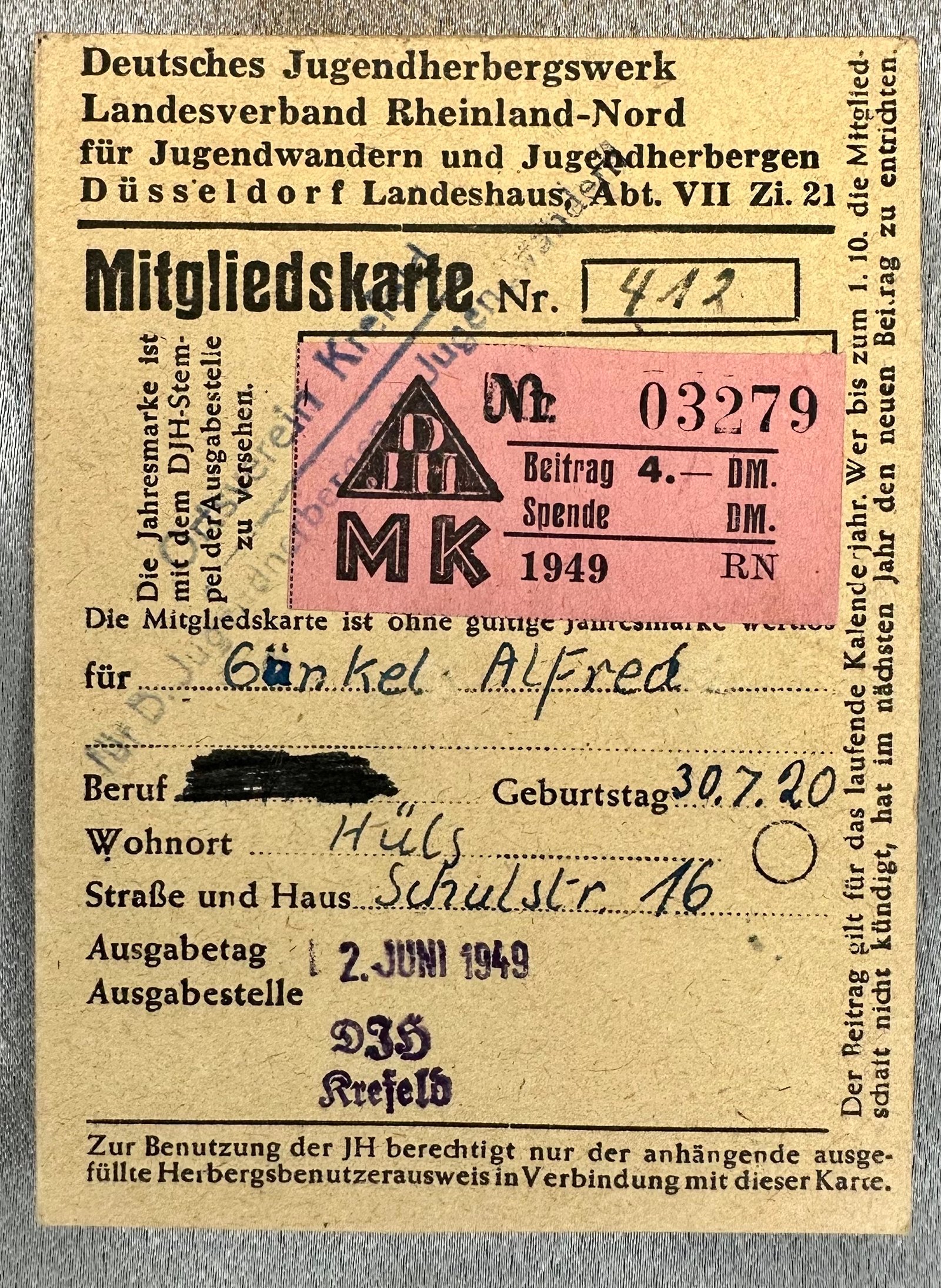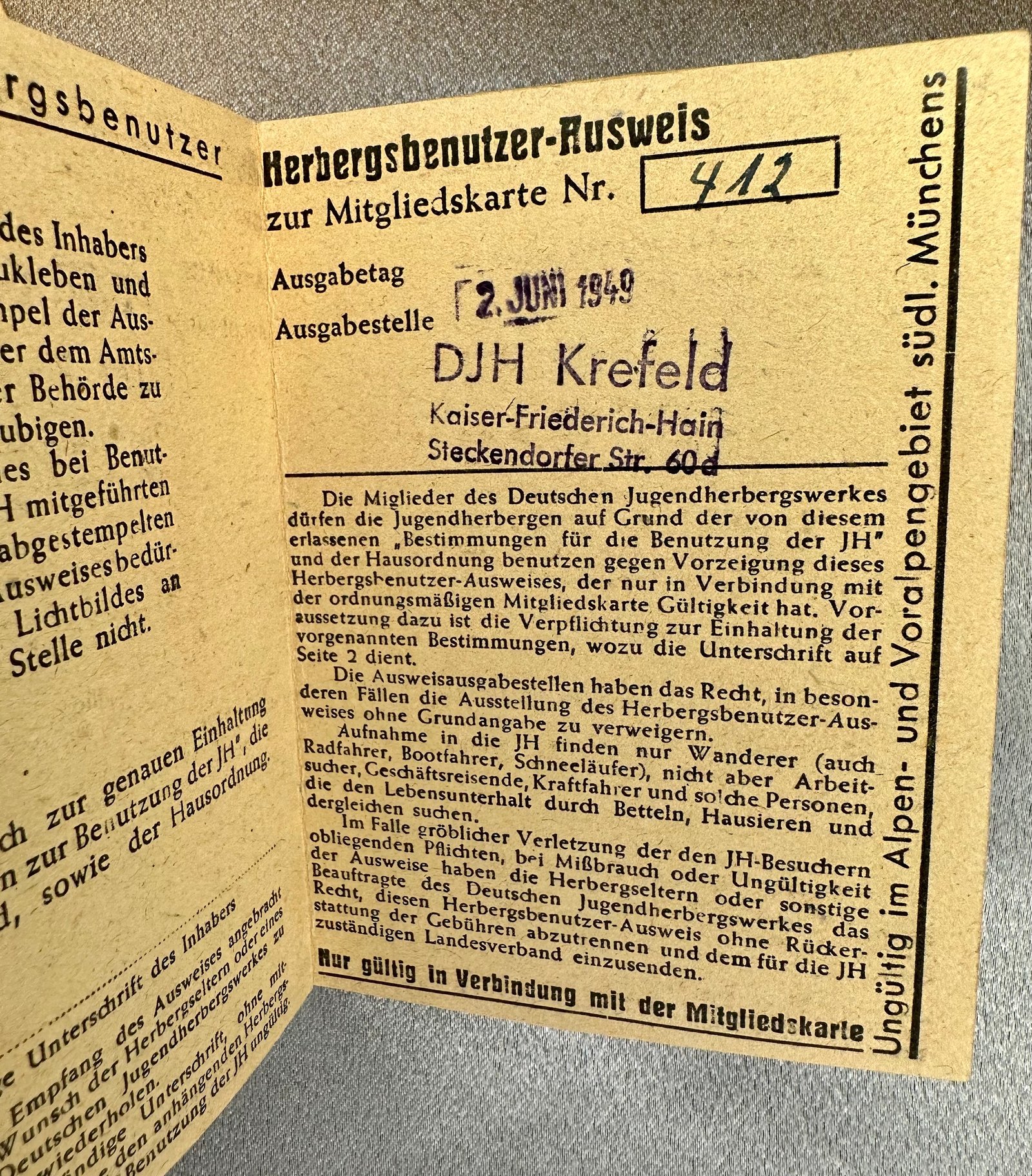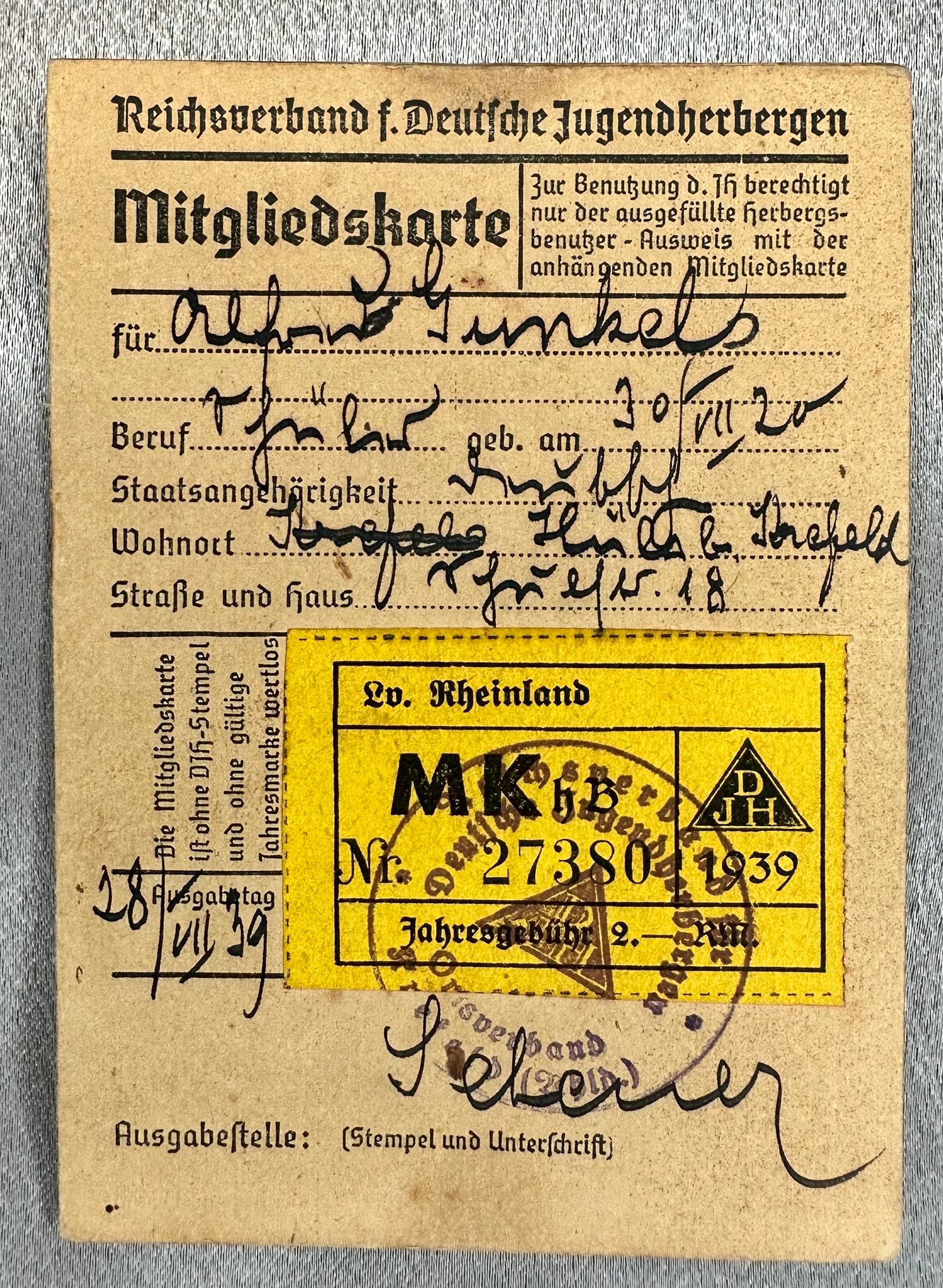 Reichsverband f. Deutsche Jugendhergergen Mitgliedskarte with Period H.J. Ausweis cover