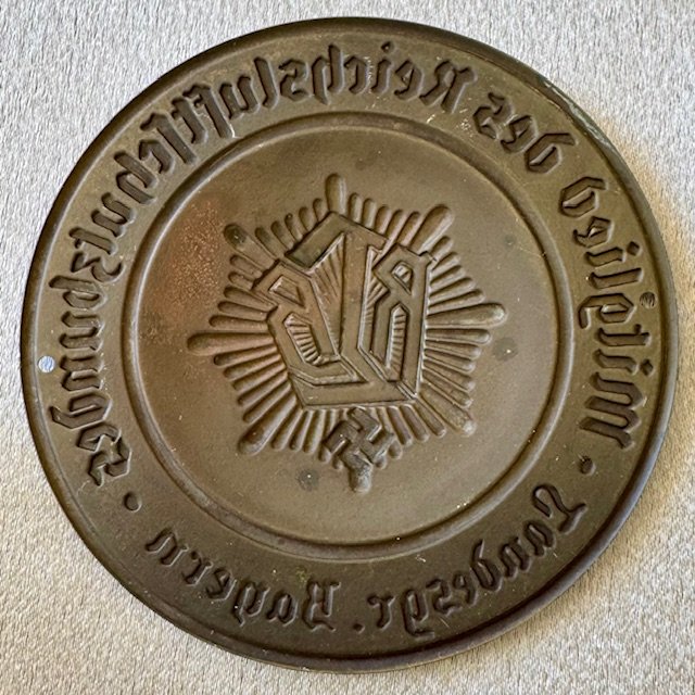 Mitgleid Landesgruppe Bayern, bronze plated aluminum, 72 mm, two mounting pinholes, near mint condition.