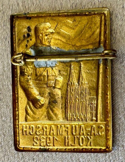 SA Aufmarsch Köln 1932 Tinnie, metal pinback, 28xx x 44mm, very rare