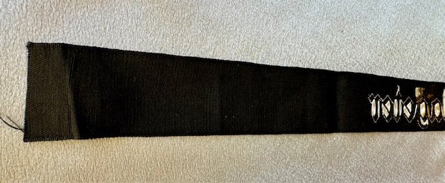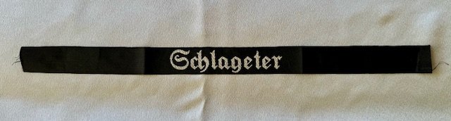 SA Honor Cuff Title "Schlageter". Machine-woven off-white with gothic style lettering on black. 18" in length
