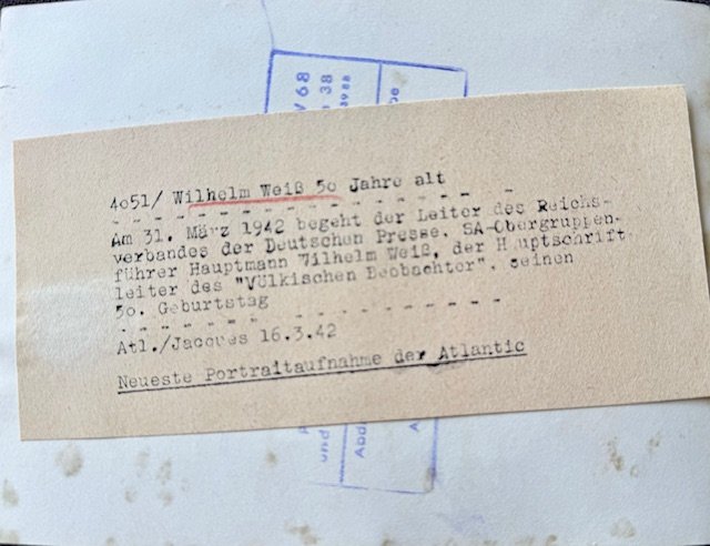 SA-Obergruppenführer Wilhelm Weiss, period press photo, 5" X 7"