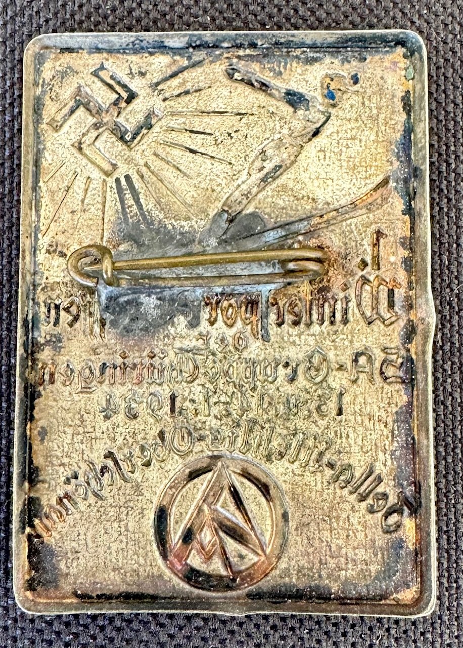 1. Wintersport-Treffen der SA-Gruppe Thüringen 13.u.14.1.1934 Tinnie. Metal pinback, Rare SA tinnie in nice condition !
