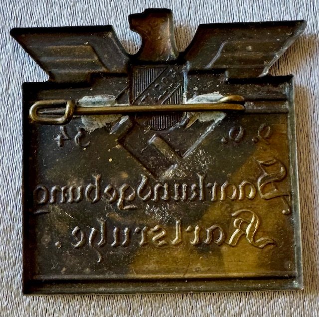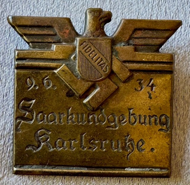 Saarkundgebung Karlsruhe 9. 6. 34. Metal pin back.