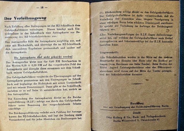 Hitler Youth shooting book (small caliber), complete and intact in very good condition, unissued