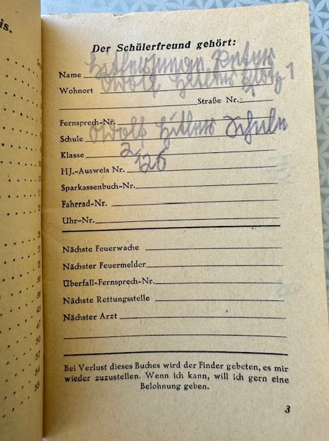 Schülerfreund Täschenbuch fur Deutsche Jungen 1941/42