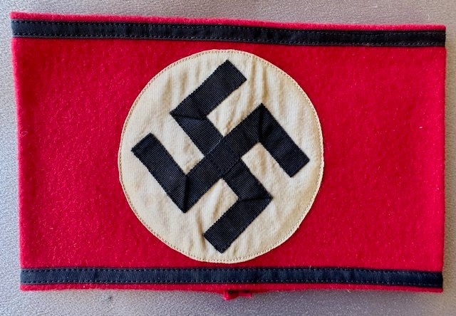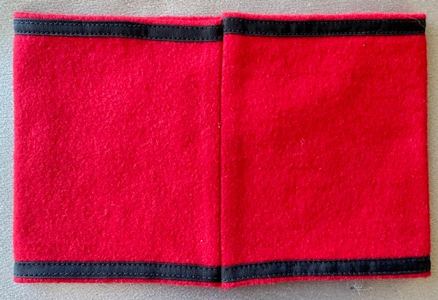 SS Armband, wool with black ribbon swastika, remnants of cloth RZM tag inside, nice condition, sewn in the back, approx. 16" in length