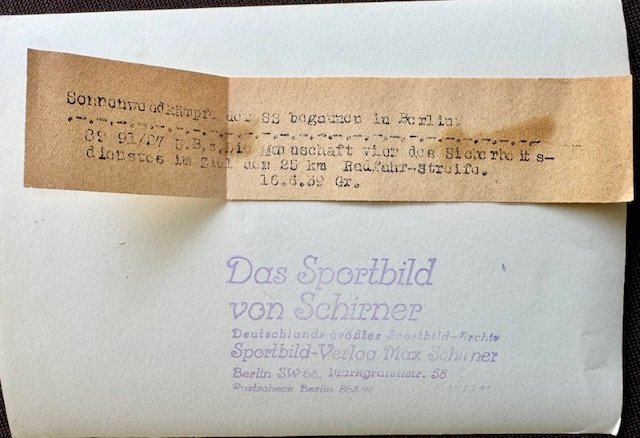 SS bike patrol began in Berlin. Fourth team of the security service finished the 25km cycling patrol. Period press photo, approx. 7" X 5"