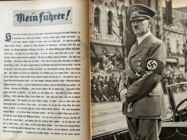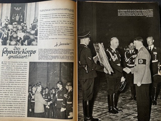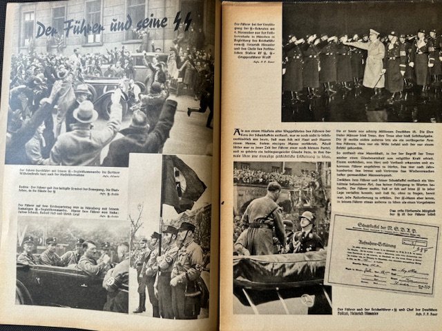 SS FM Zeitschrift Magazine, Mai 1939 edition of FM Zeitschrift for contributing members of the SS. Original example of the 8 x 11-3/8 inch heavily illustrated monthly magazine. These rare magazine were published in Berlin by Reichsführer SS Heinrich Himmler for the Fördernte Mitglieder or patron members of the SS. All pages intact, very rare to find