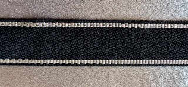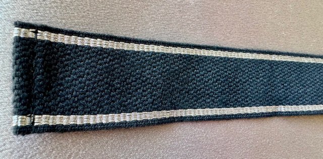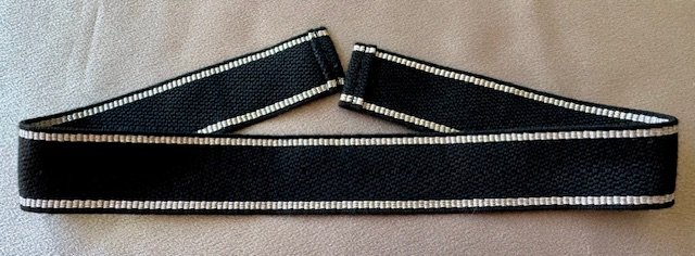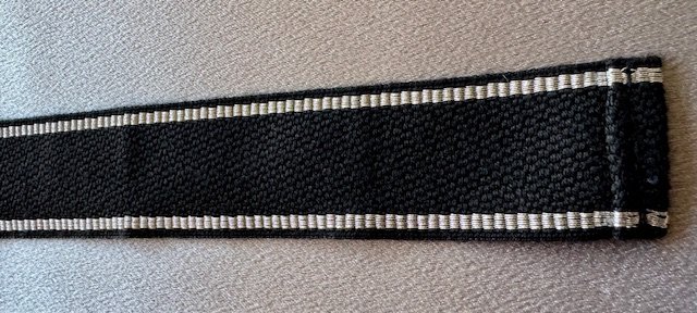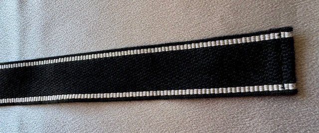 SS Officer's Blank Cuff Title, black band with silver aluminum 7 thread borders, blank center, both ends finished. Length 19"