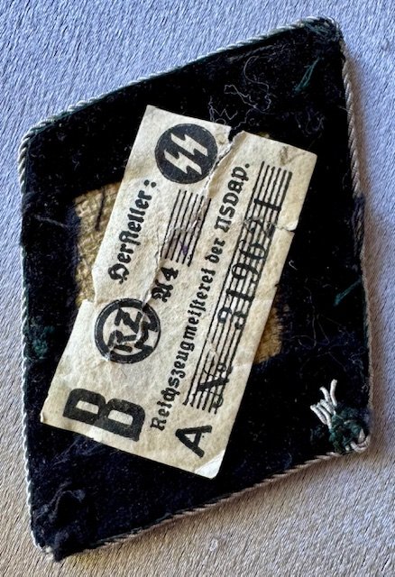 SS Standartenfuhrer Collar Tab, 2nd variation without acorns, worn from October 1934 to April 1942, RZM tag to reverse.