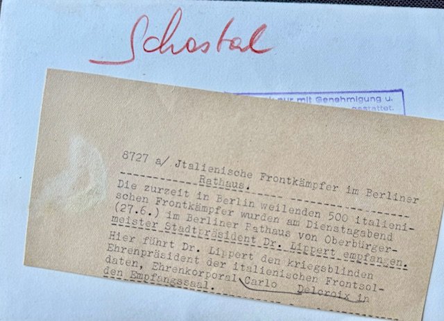 Staatpräsident Julius Lippert with Italian Carlo Delcroix, period press photo, 5" X 7"