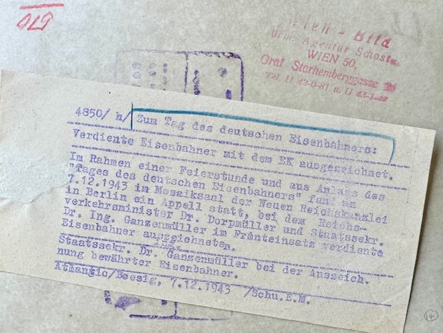 Staatssekretär Albert Ganzenmüller during "German Railwayman's Day" event on 12/7/1943, period photo, 5" X 7"