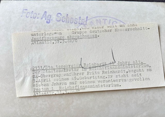 Staatssekretär and one time Gauleiter for Upper Bavaria Fritz Reinhardt, period press photo, 5" X 7"