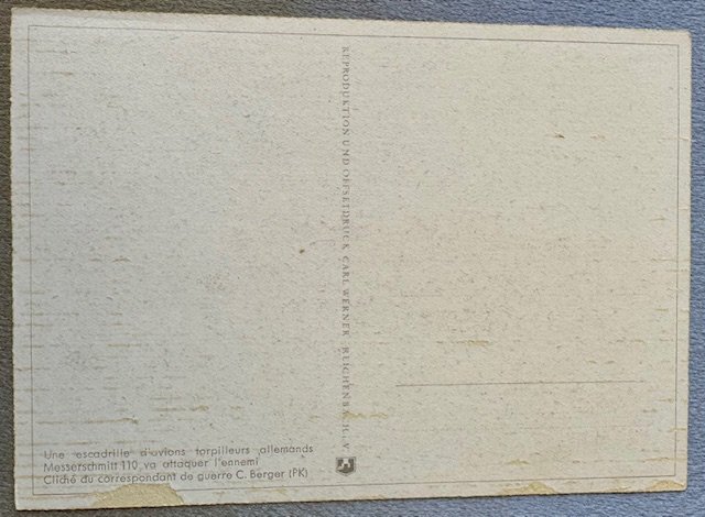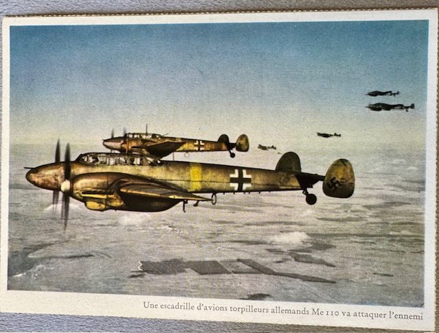 Une Escadrille d'avions torpilleurs allemands ME110 va attaquer l'ennemi, occupied France postcard