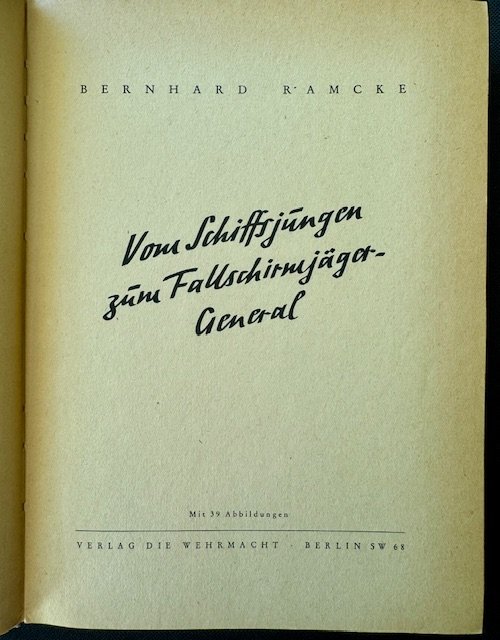From cabin boy to paratrooper general by Generaloberst Hermann Bernhard Ramcke. Published by Berlin, Verlag Die Wehrmacht, 1943. Over 250 pages of texts with numerous images.