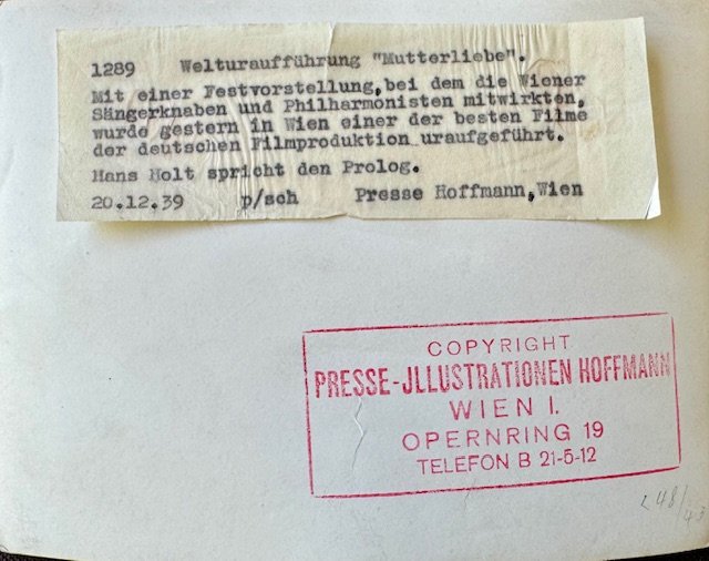 World premiere "Mother's love" 1939, period press photo, approx. 7" X 5"
