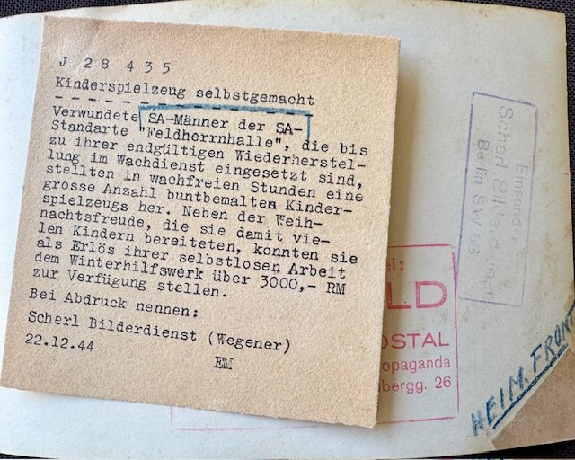 Wounded SA men of the SA Standard "Feldherrnhalle" working on Christmas gifts 12/22/1944, period press photo, 7" X 5"